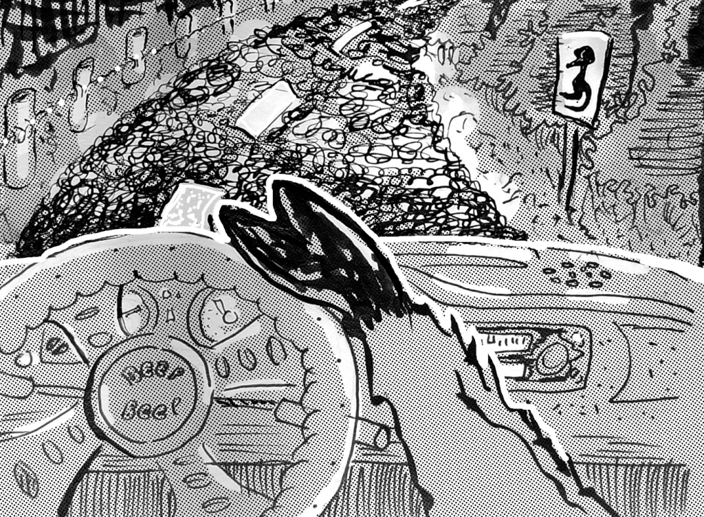 Along the way, I discovered a style I love: halftone dot patterns paired with ink washes. This technique worked well for me because it allowed me to achieve midtones, which these drawings would otherwise lack. I even thought about going back and adding halftone to the first half of the drawings!